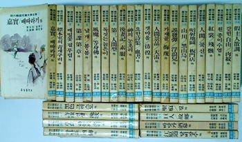 제1-32권까지만 있음. 그 중에서 제9,15권이 없음. 현30권. 세로쓰기. 전권 모두 표지 때타고 표지와 머리,배면,밑면에 누런 얼룩 매우 많음. 제18,20,24권 책등 테두리 많이 짖어져 테이핑. 제30권 책가위 없음. 본문 안쪽은 모두 양호함. 크기: 110×170